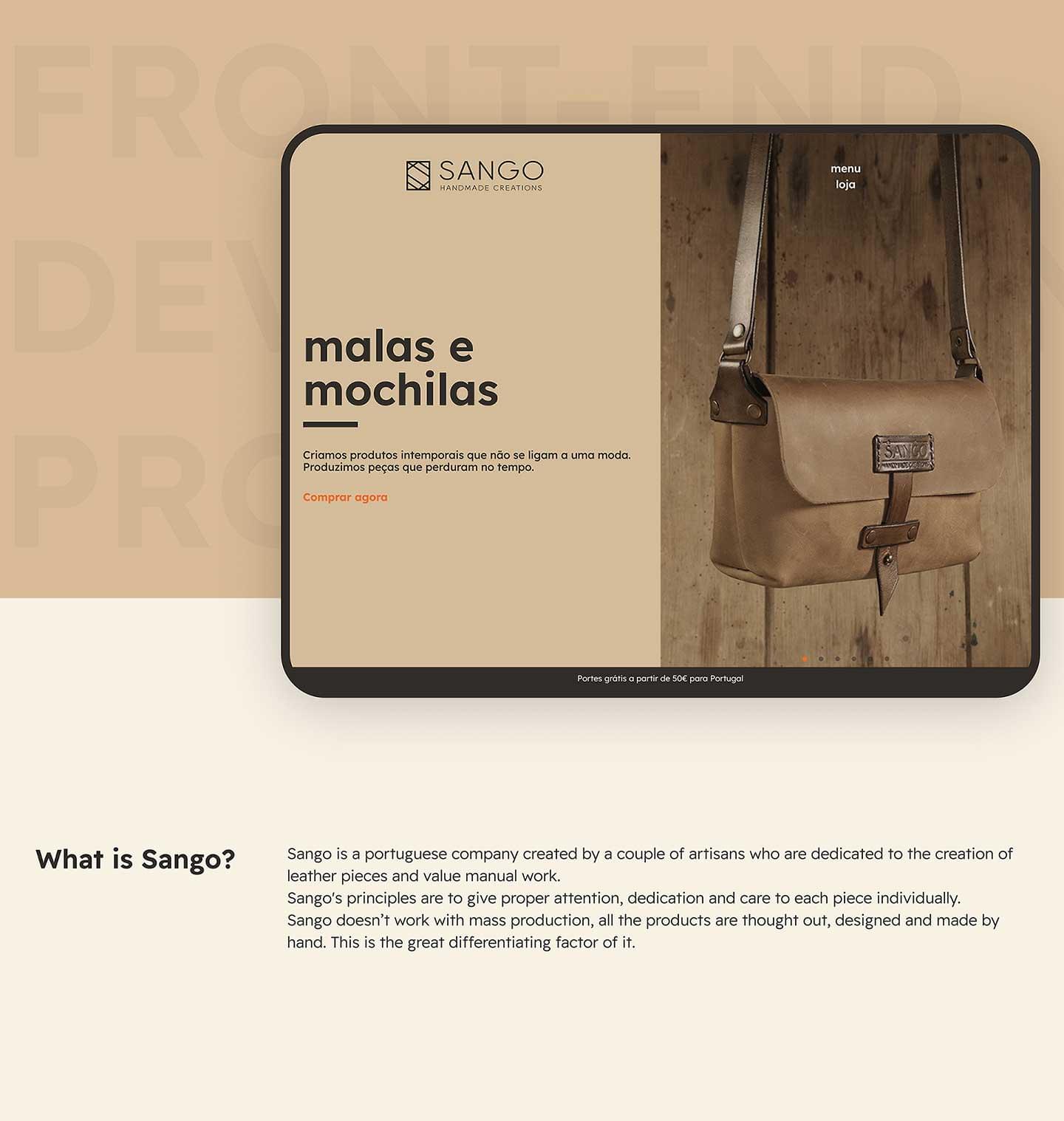 This project was a total rebranding, from the logo to the website and online shop. The main aim was to develop the front-end of the whole Sango's website.